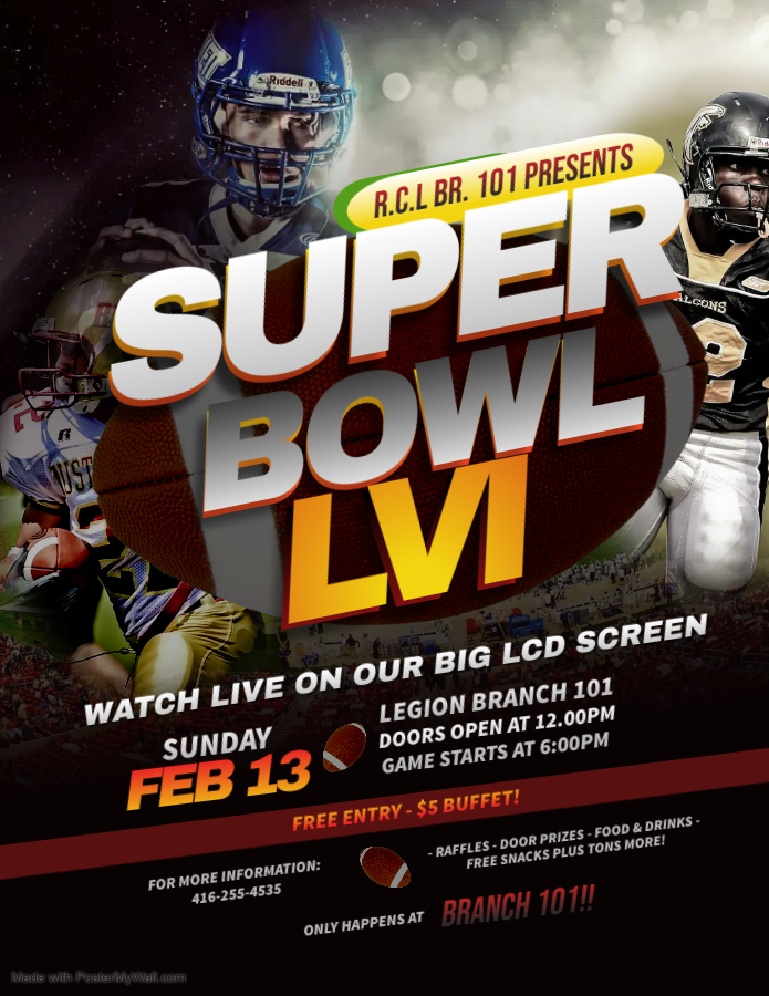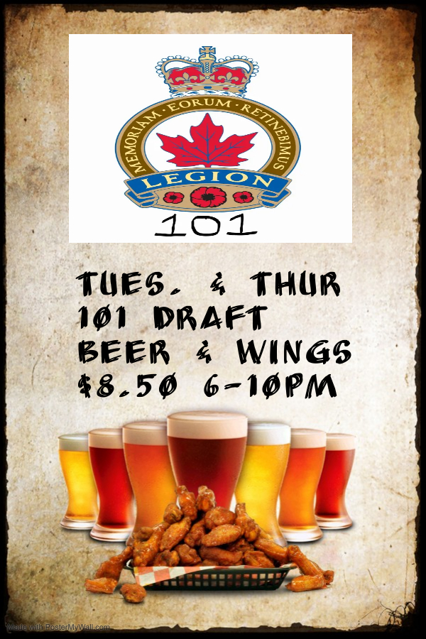 We will be reopen to the public with 50 per cent capacity limits effective Jan 31 2022, pandemic procedures will still be in place. Schedule of our in house Legion events and start up dates. Cribbage - Tues. 7pm Snooker League - Thurs., 6pm Euchre - Mon. 7pm Bingo - Thurs. Feb. 17th, 2pm Meat Spin - Sat. Feb. 19th, 2pm Senior euchre on Wednesday afternoons We still have our wings and beer special on Tuesday and Thursday nights from 6pm onward! Best deal in town!!